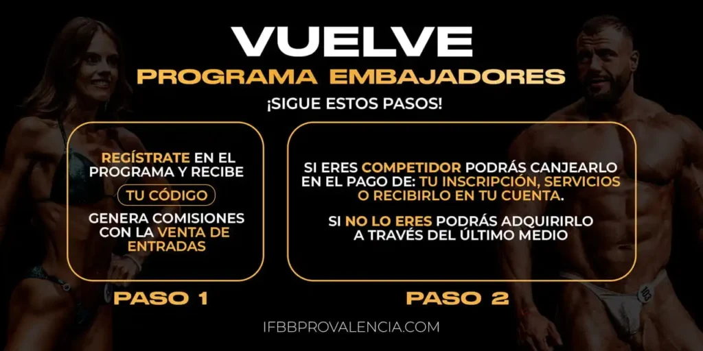 ¡Regístrate y empieza a beneficiarte de nuestro programa de embajadores IFBB PRO Valencia!